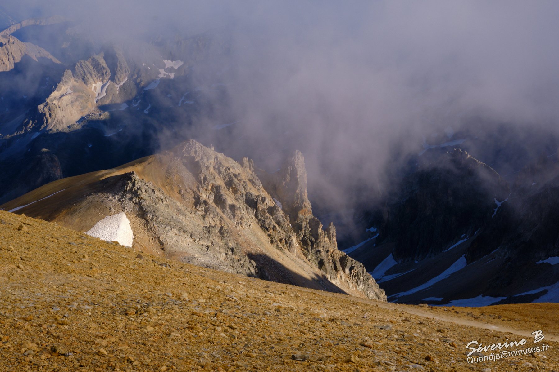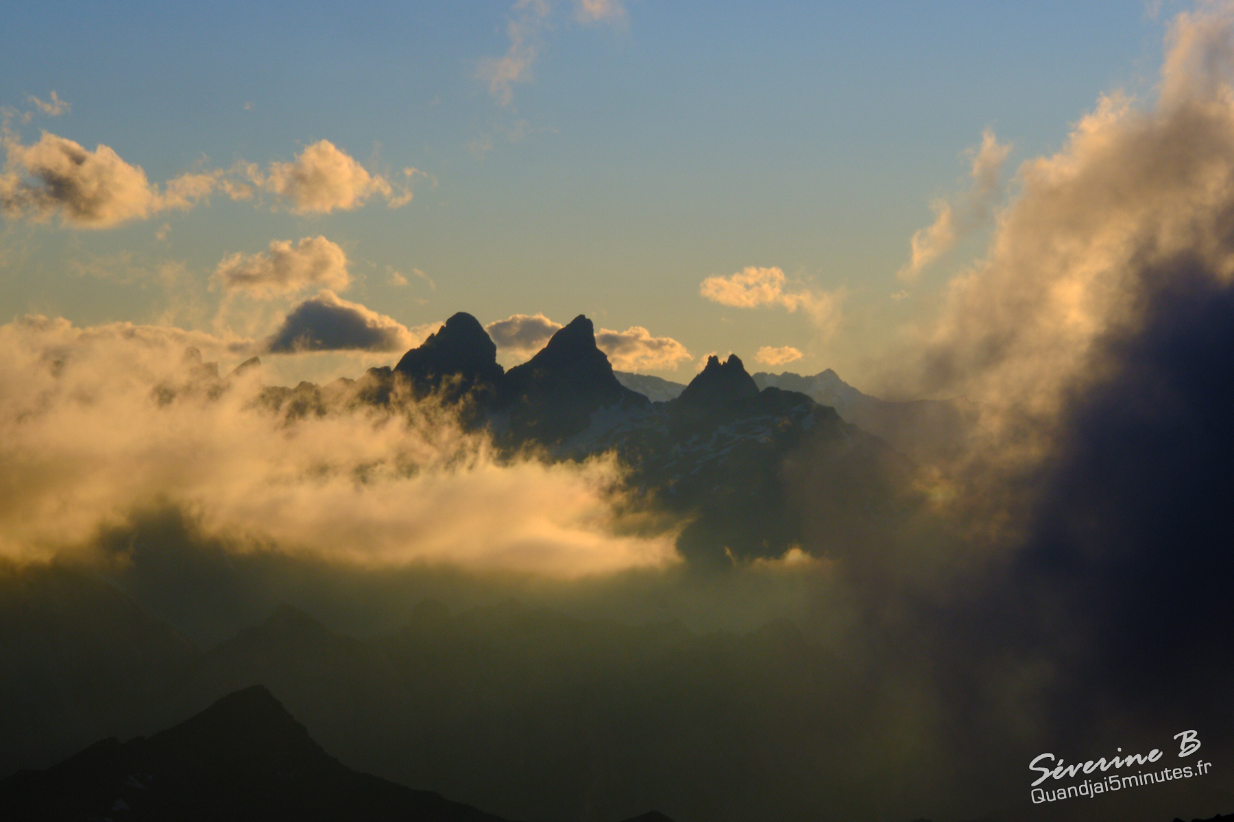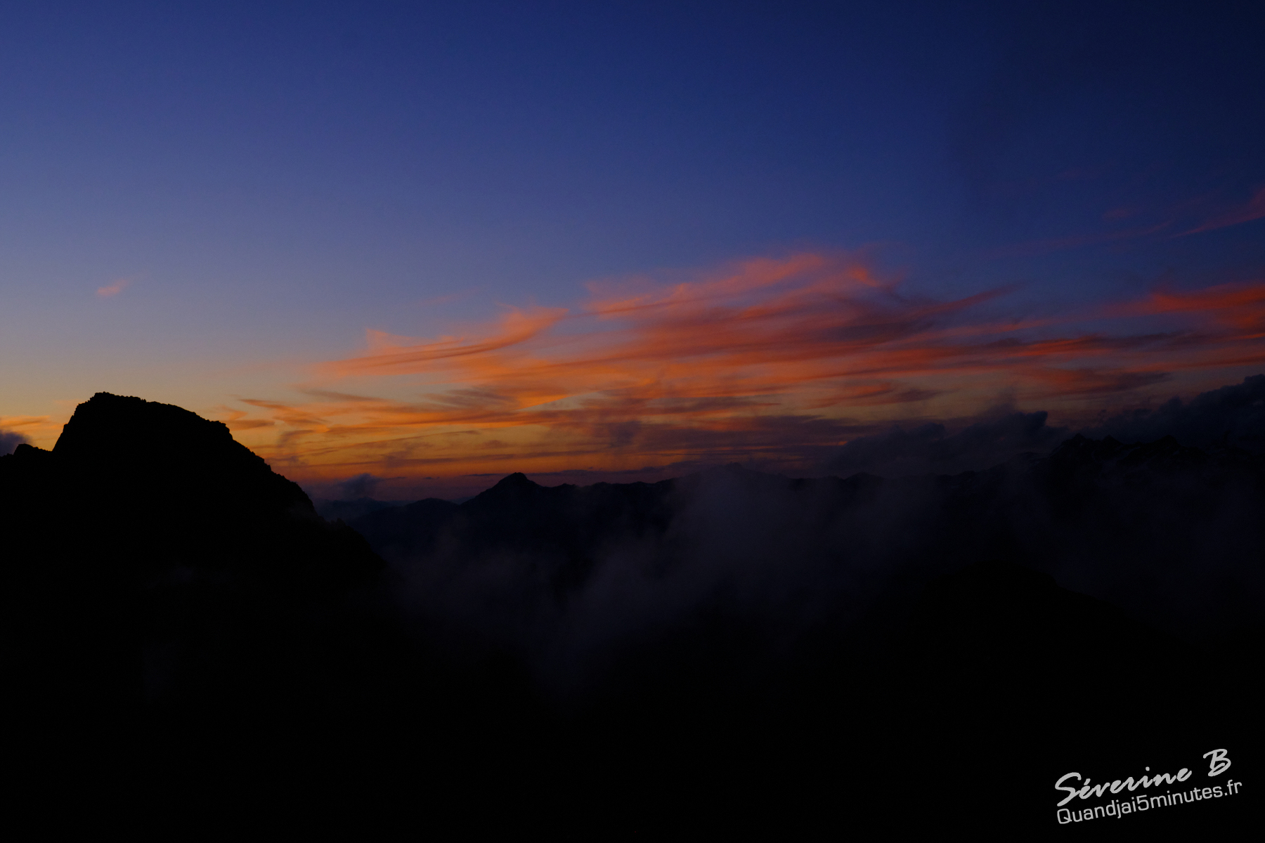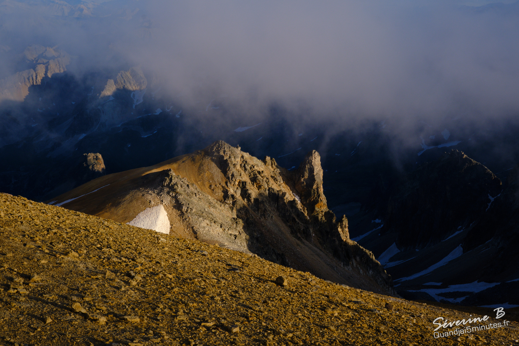 Nous avons passé une soirée magique ! La brume montait de la vallée, cachant et dévoilant les sommets alentours.