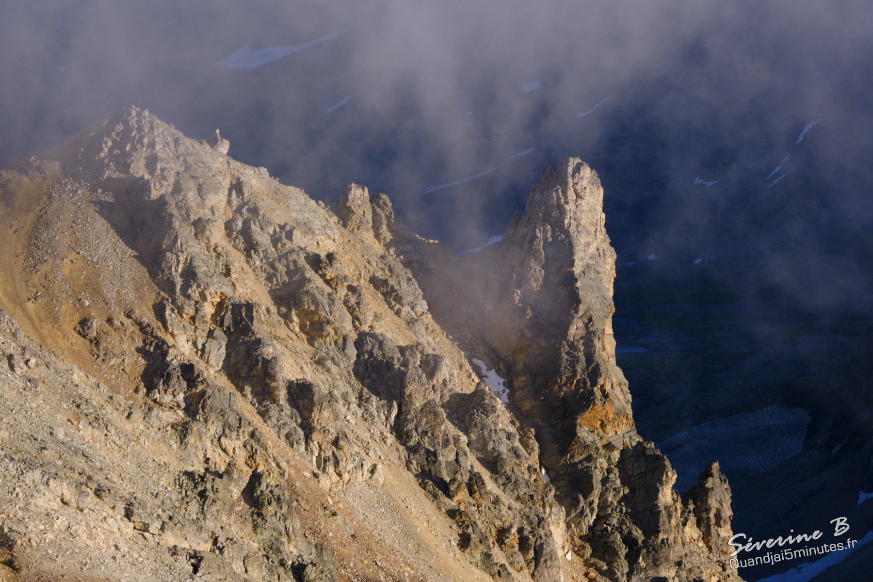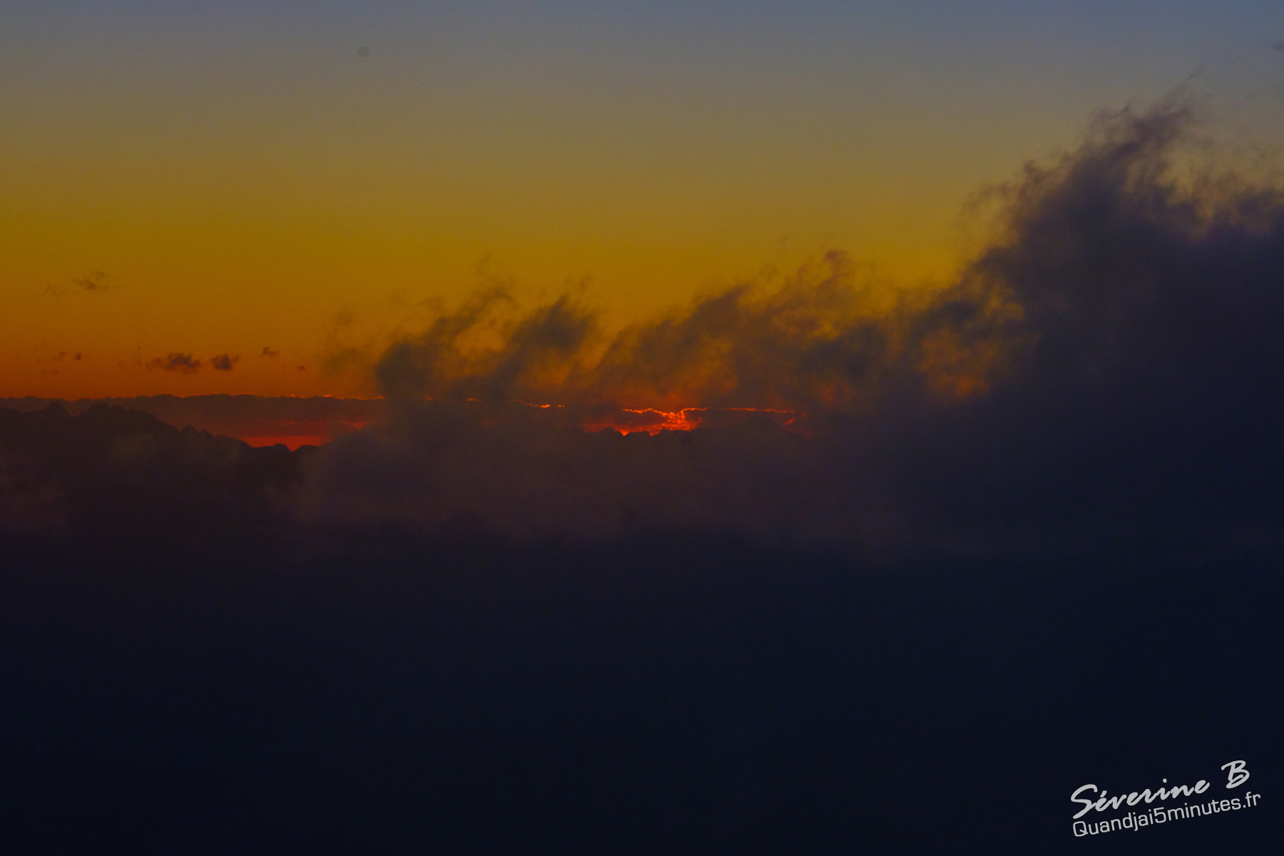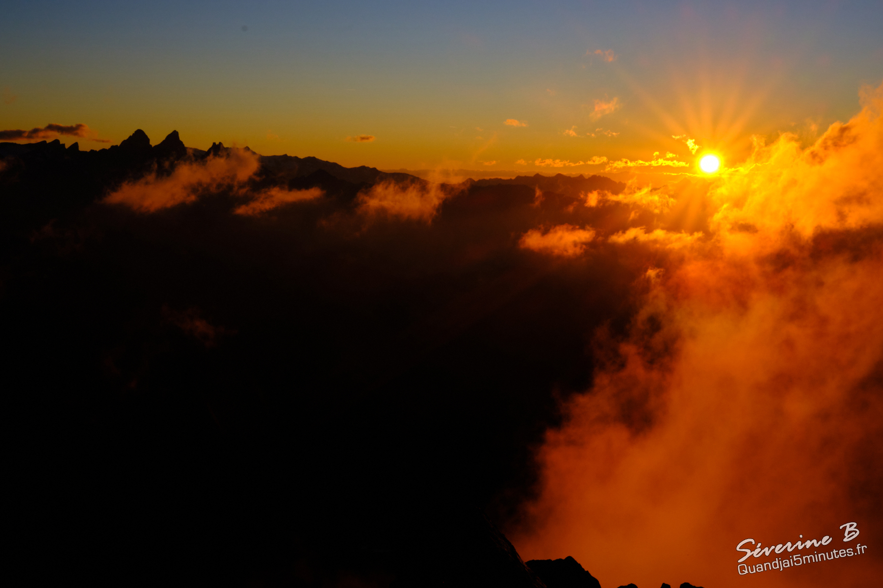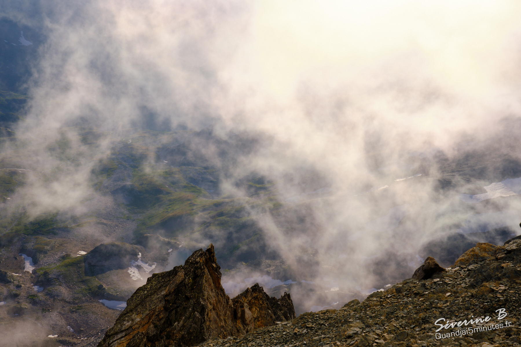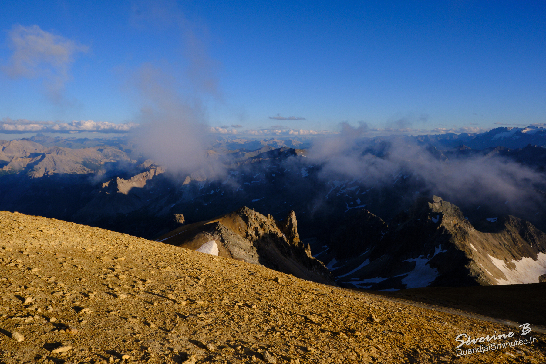 Nous avons passé une soirée magique ! La brume montait de la vallée, cachant et dévoilant les sommets alentours.