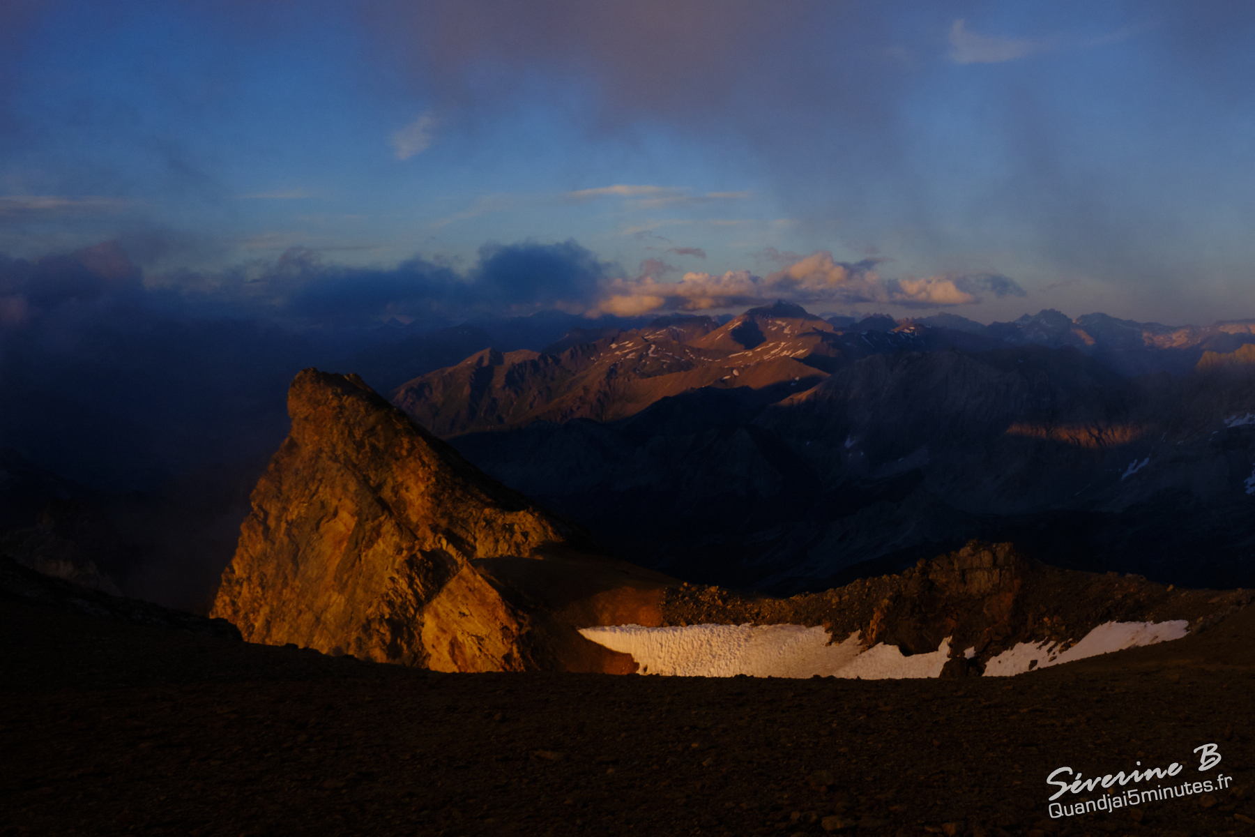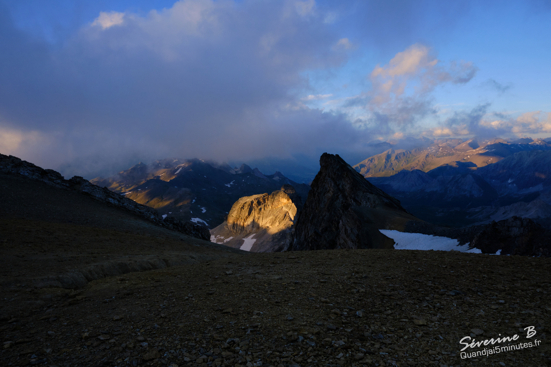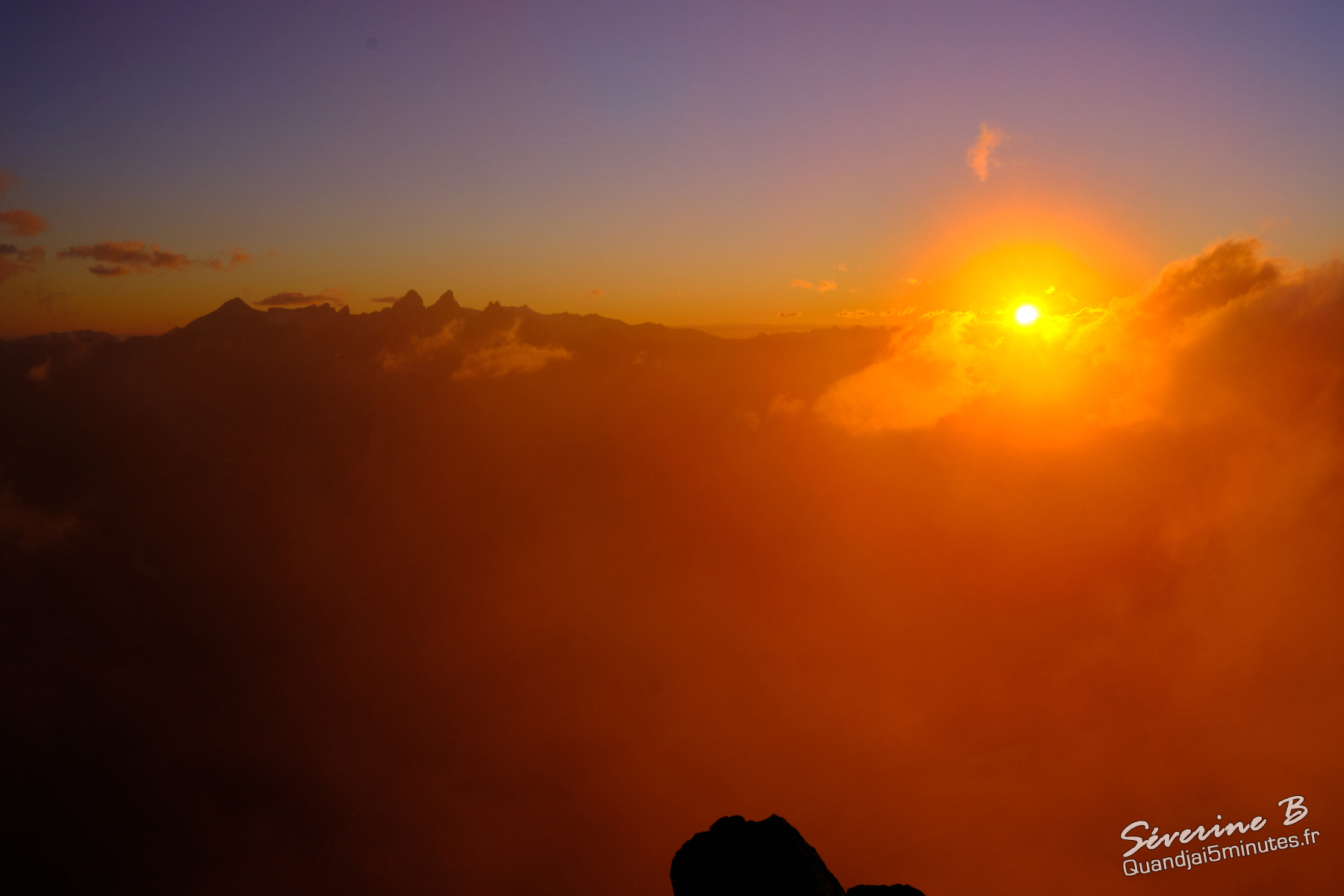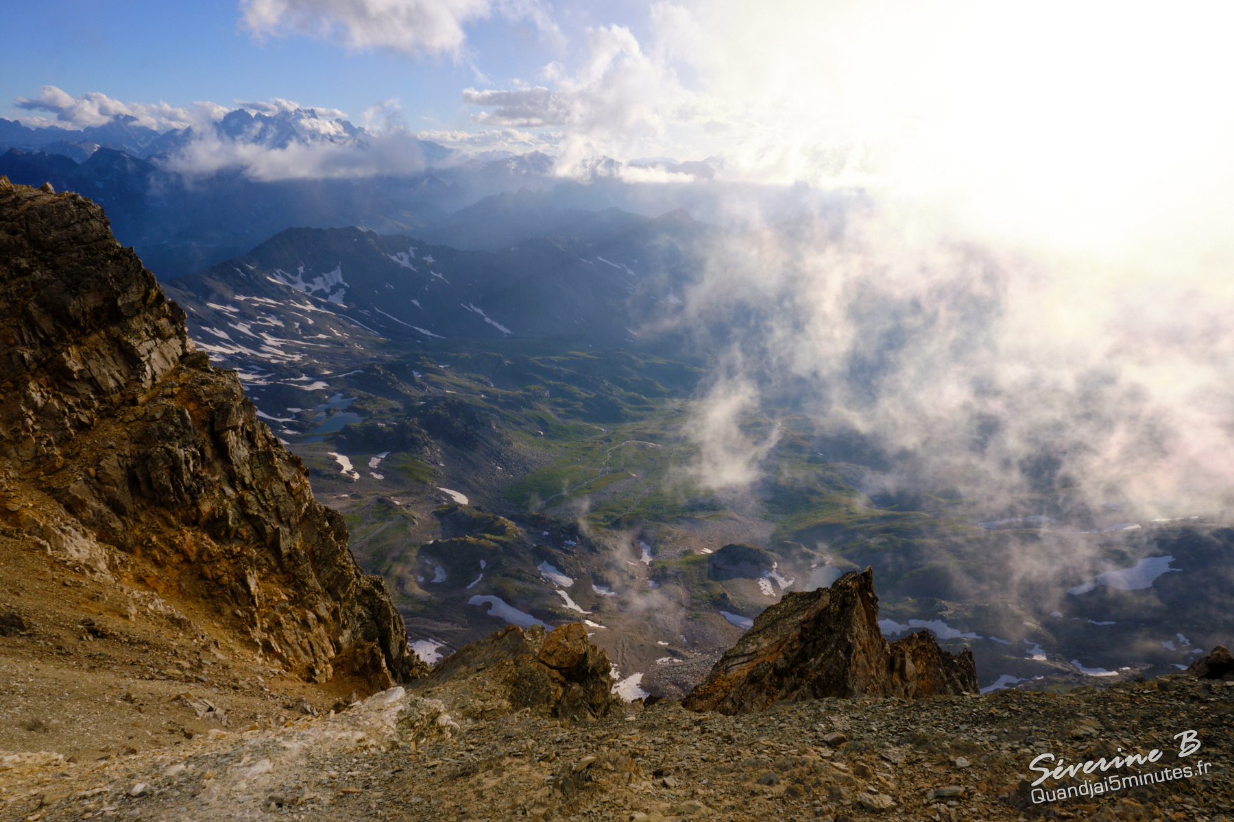 Nous avons passé une soirée magique ! La brume montait de la vallée, cachant et dévoilant les sommets alentours.