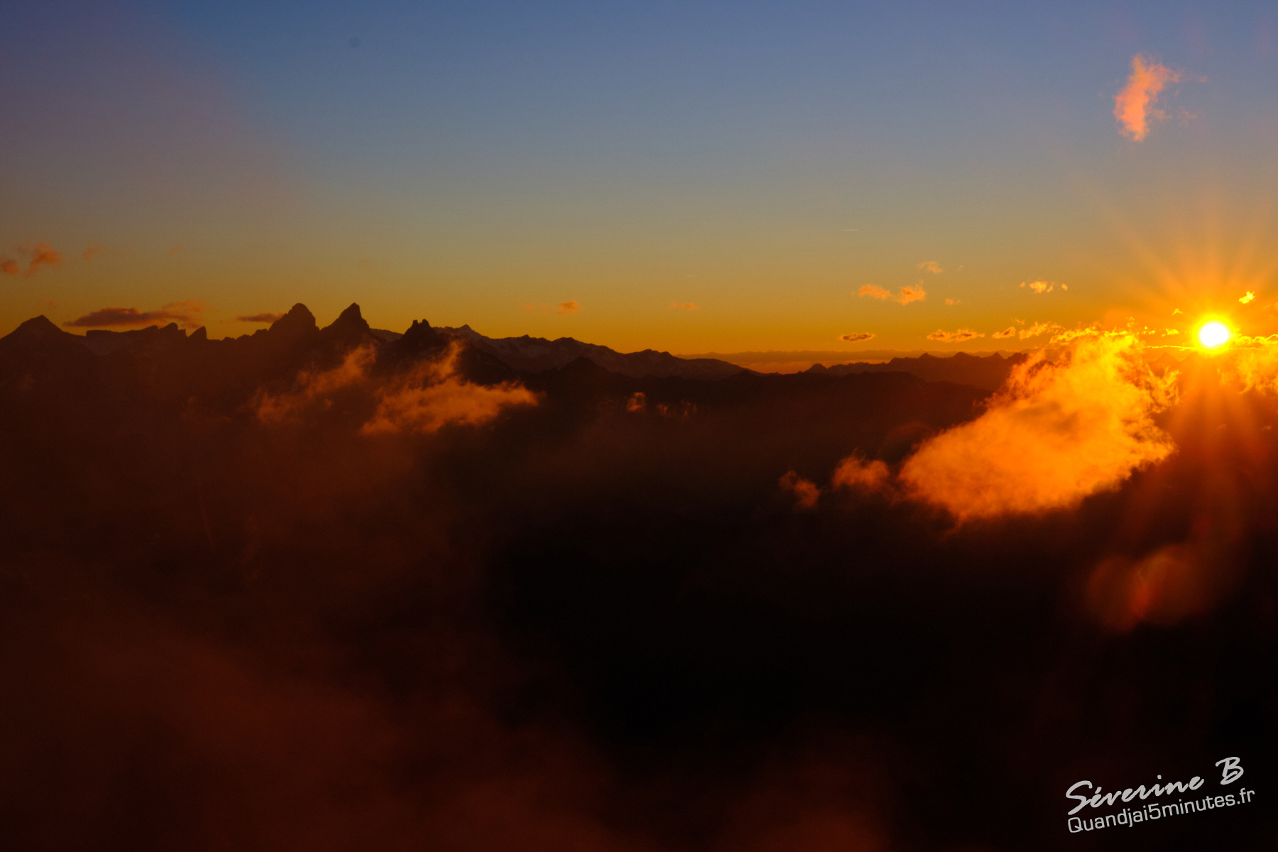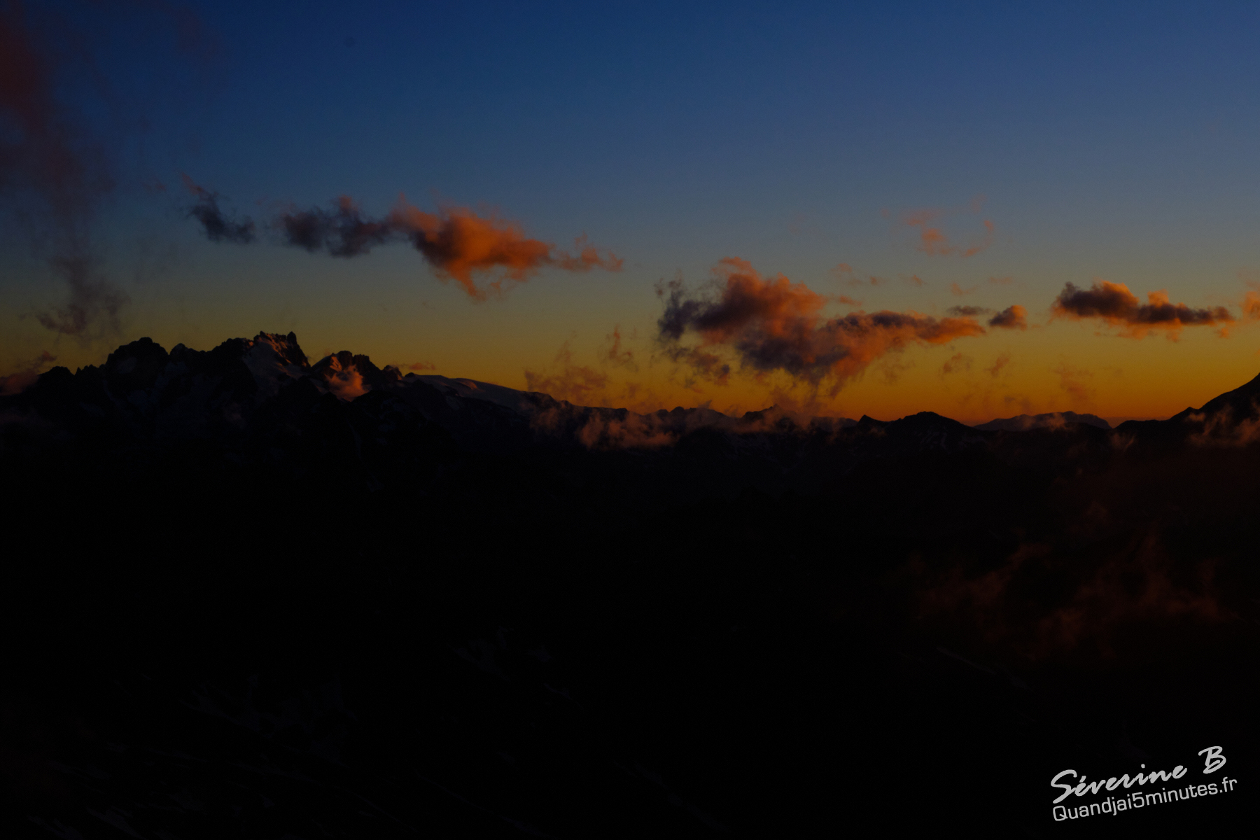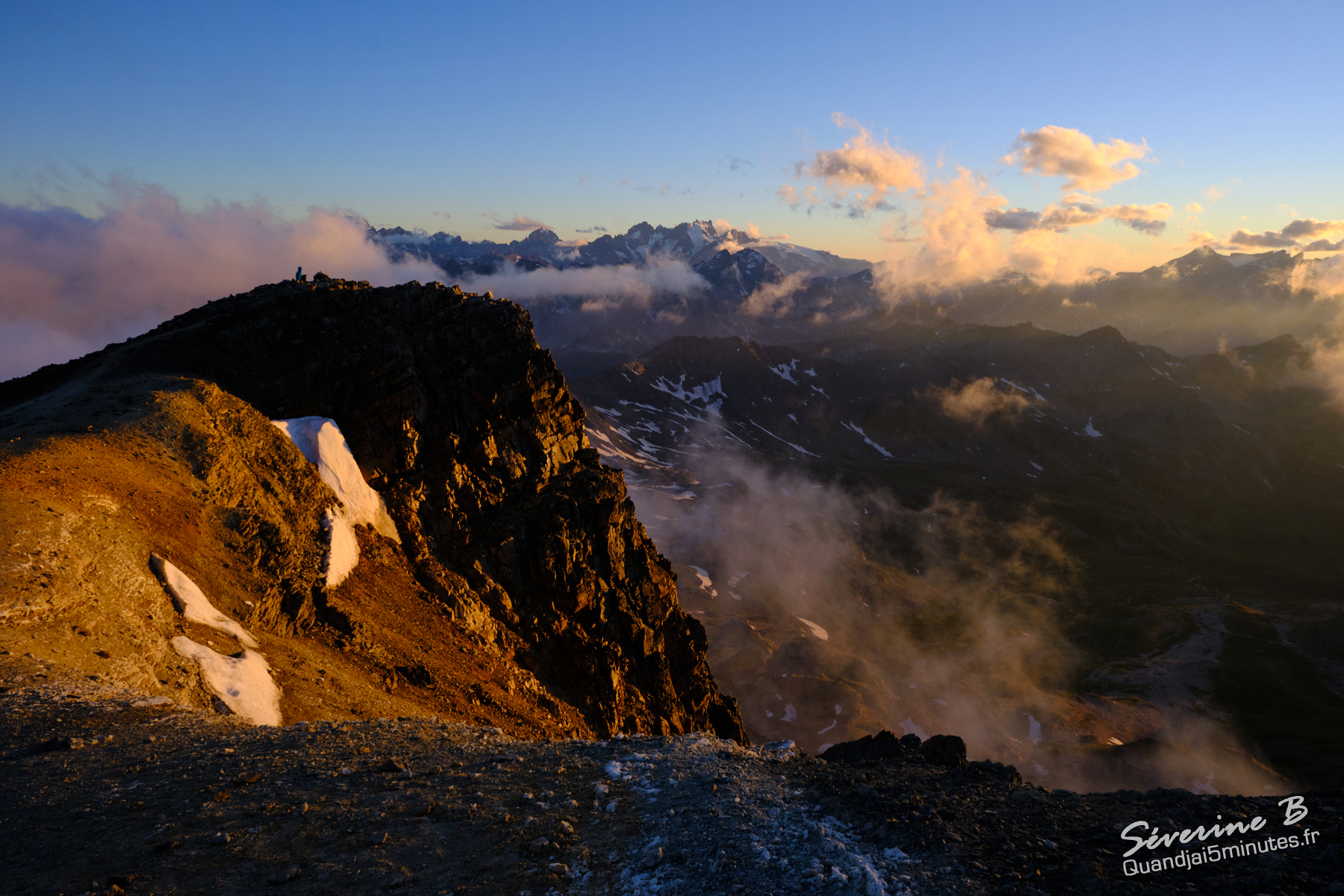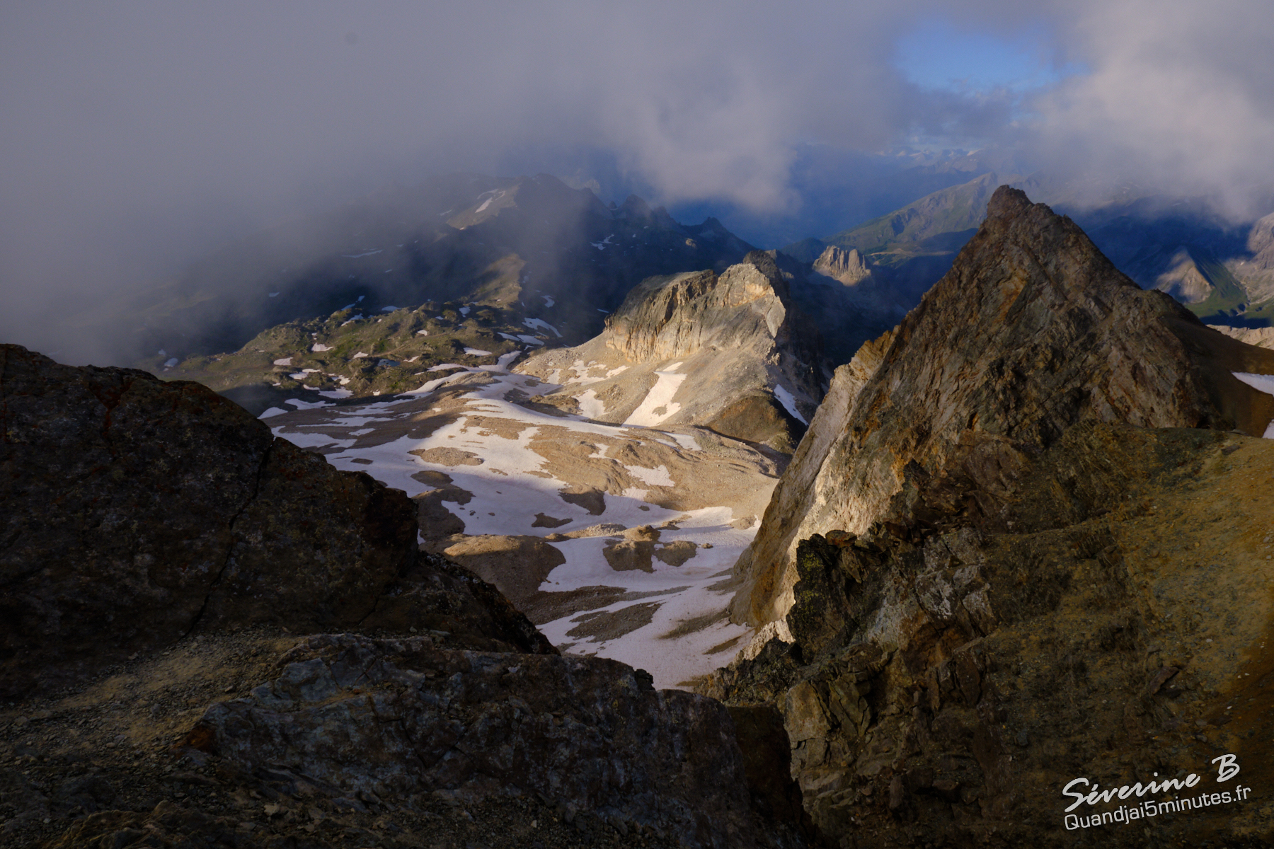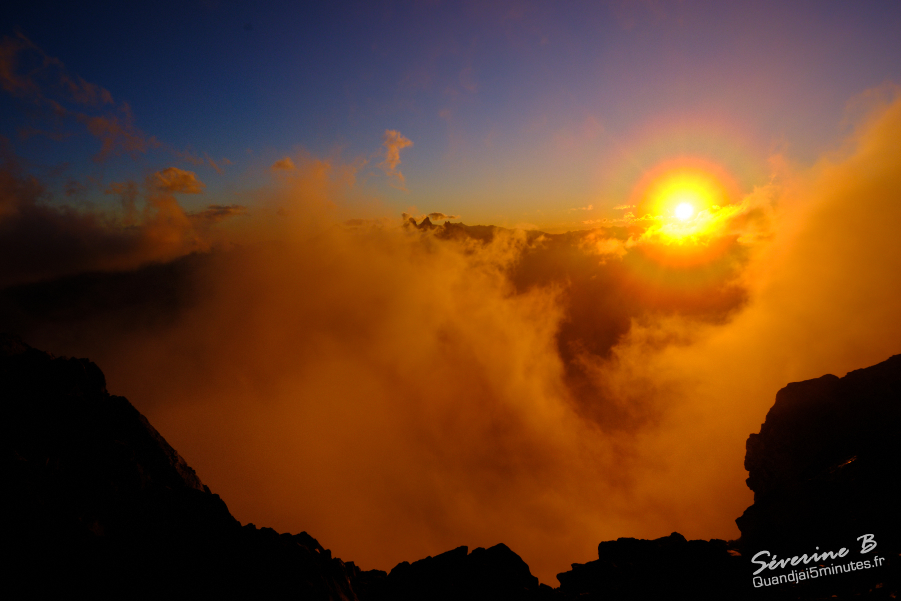 Nous avons passé une soirée magique ! La brume montait de la vallée, cachant et dévoilant les sommets alentours.