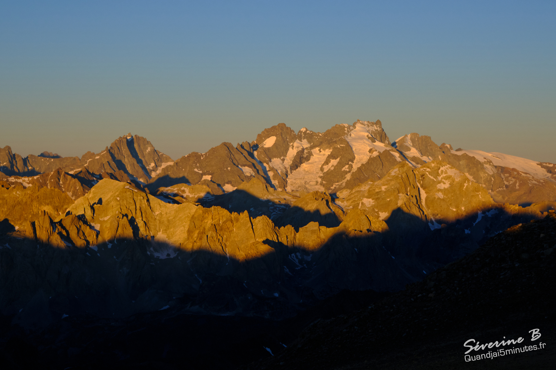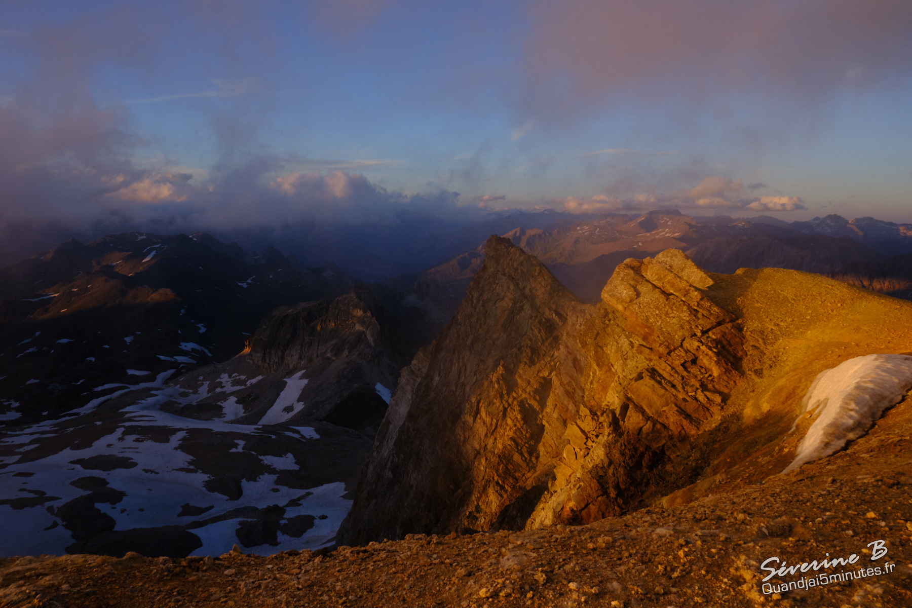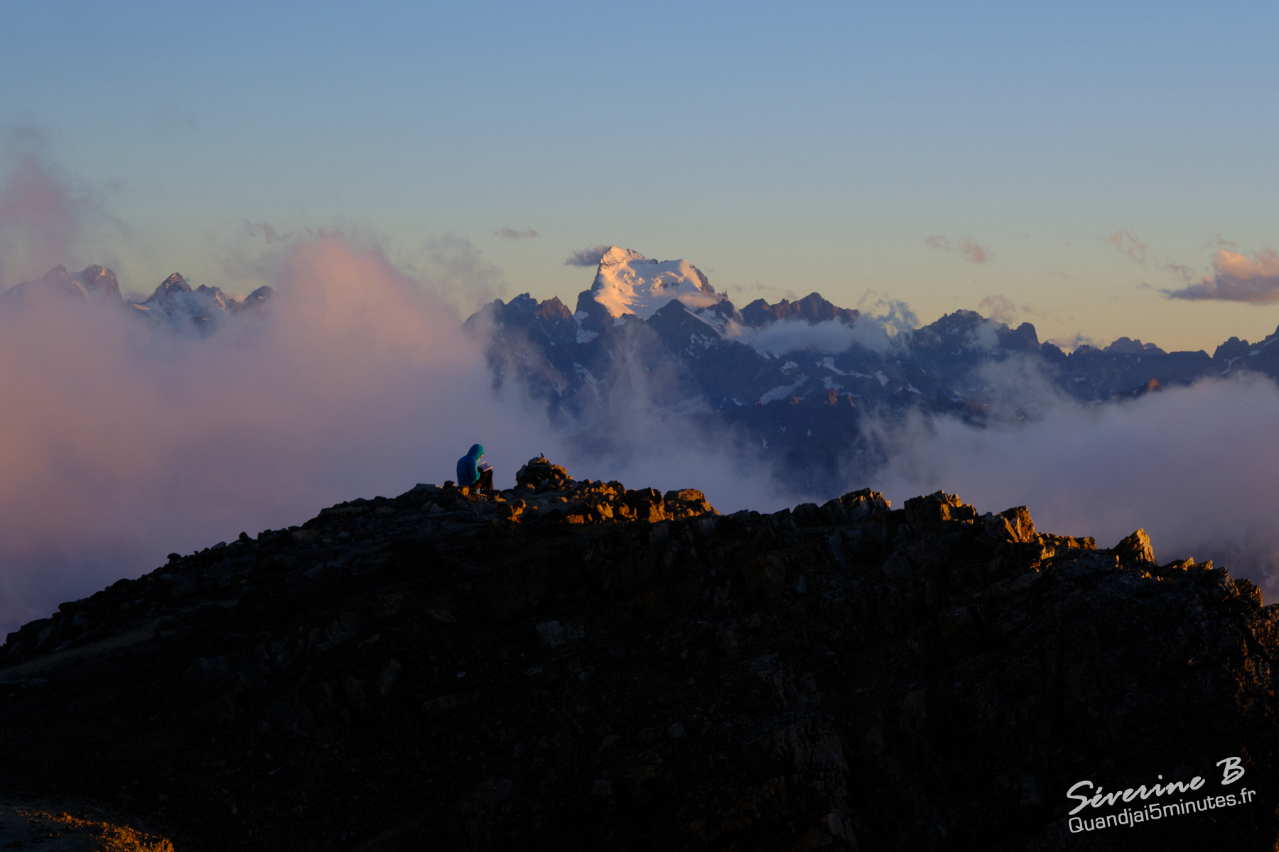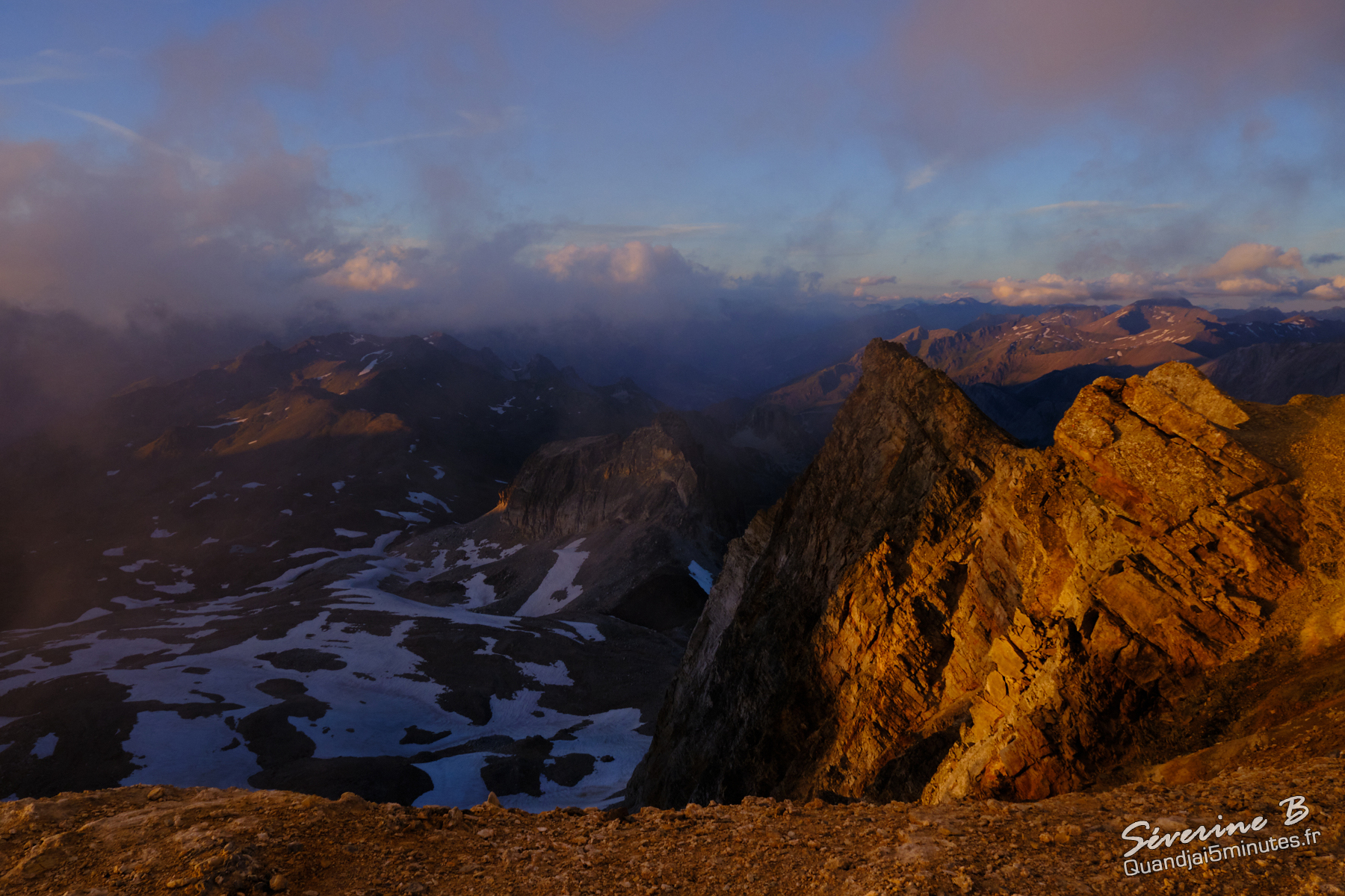 Nous avons passé une soirée magique ! La brume montait de la vallée, cachant et dévoilant les sommets alentours.