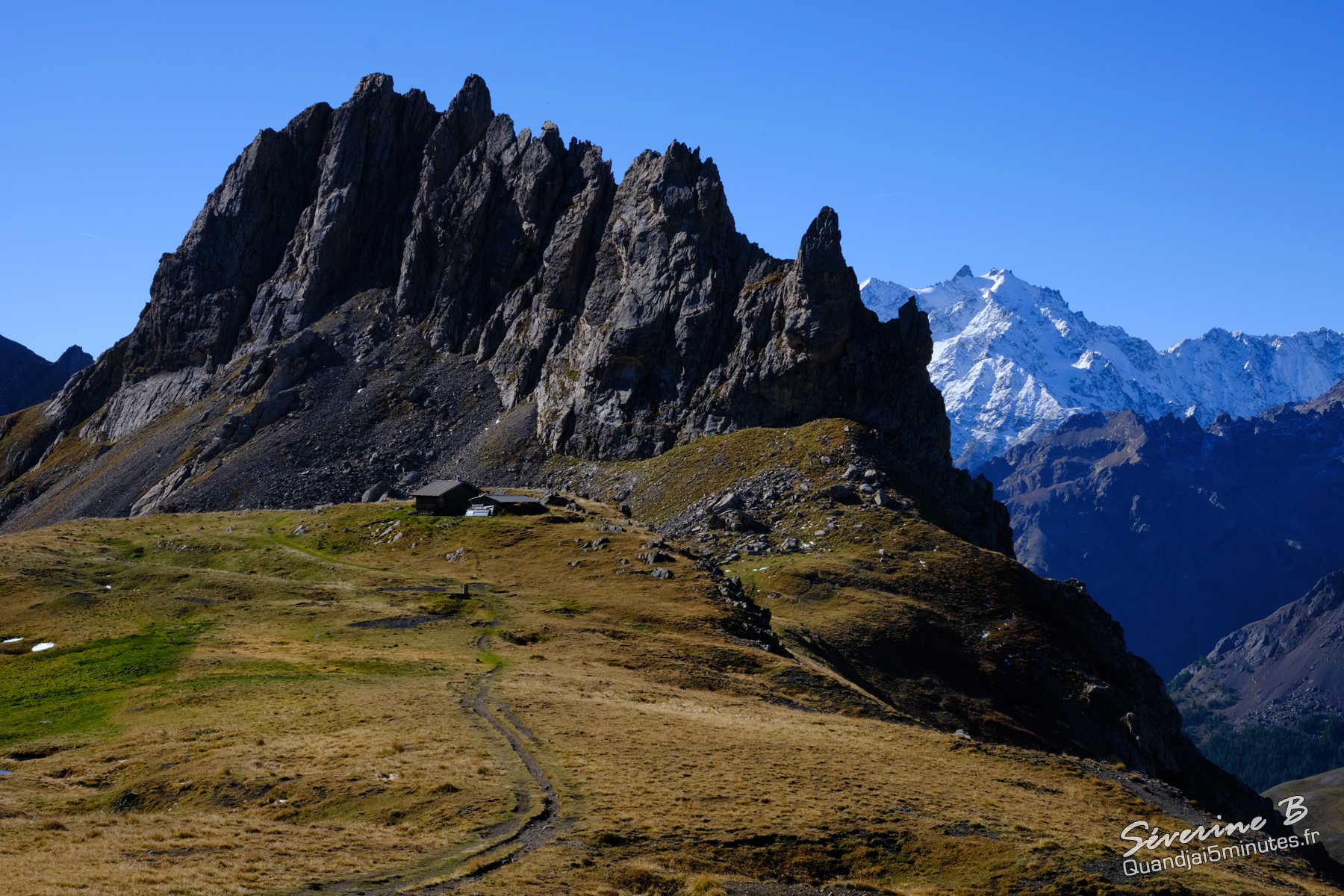 La piste qui mène aux Mottets secoue un peu. Il est possible de se garer sur le parking de Plan Lachat (en direction du col du Galibier)
