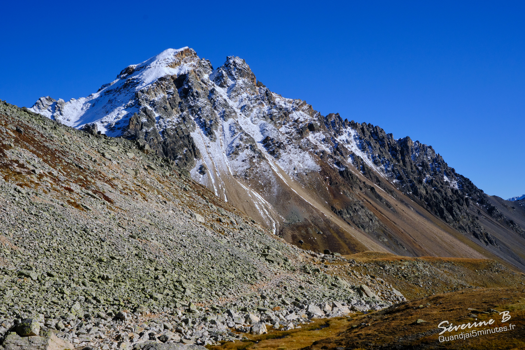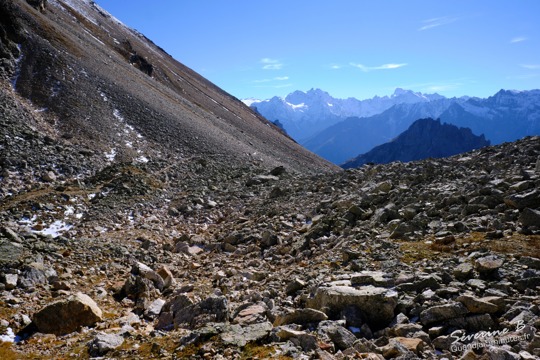 Le sentier traverse de longs éboulis mais il est bien marqué. A éviter par temps de pluie.